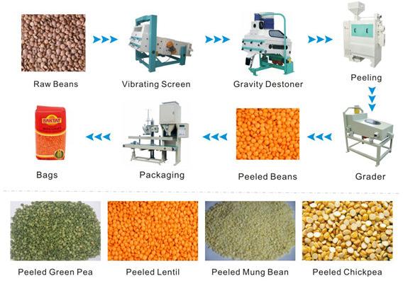 Lentil Hulling Machine Feature: The advanced hulling technology is composed of extraction, hulling, brushing, adding oil, air cooling, grading and packaging. The extractor effectively removes worm damaged, mildewed and broken particles, increasing quality of the lentil. The hulling process includes 3 times of light grinding. The brusher effectively removes dust on the surface of the material. The double-case plansifter is used to separate brokens in the lentil.