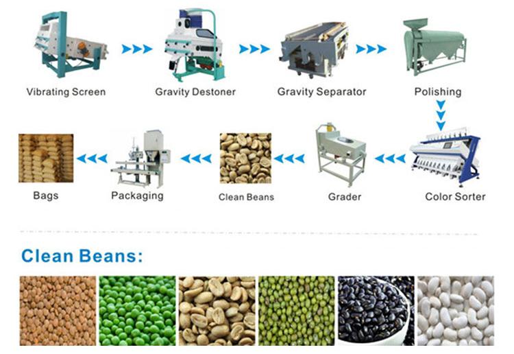 5. The production line is widely suitable for processing various grains and beans, including soybeans, mung beans, adzuki beans, kidney beans, and coffee beans.