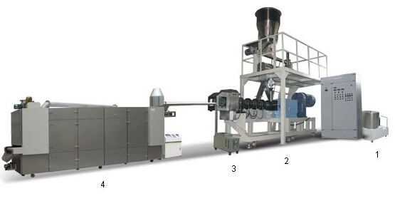 The curd is pumped to the high pressure pump which conveys the them to the cocurrent spray drying tower. The hot wind of the nozzel quickly dries the curd into powder. The dried protein is discharged out by cyclone separator while the meal is pneumatically conveyed to finished product storage for weighing, packaging, heat sealing and sack closing. Then they are conveyed to warehouse after being metal detected.
