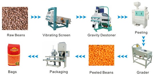 Win Tone beans cleaning and peeling plant adopts excellent automatic solutions and can reduce labor cost and production cost. Meanwhile, it can reduce the influence from impurities, dust and bran. This complete plant can process soybean, broad bean, lentil, cowpea, mung bean, black soya bean, kidney bean and other beans.