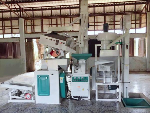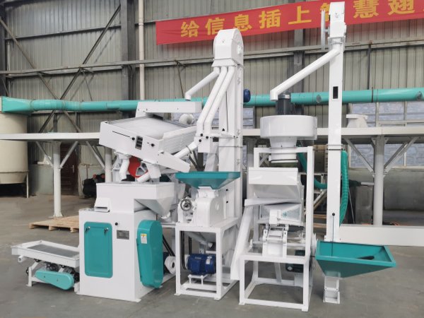 The raw rice is poured into charging hopper and then elevated to cleaning screen by the single elevator. The rice without big impurities is sent to destoner to remove impurities heavier than the rice and a part of light impurities and dust. The clean rice is conveyed to rubber covered roller hulling machine by the duplex elevator to be hulled. The big husks are separated out and conveyed out of the machine or collected by the cyclone and sent to the grinder; the mixture is conveyed by duplex elevator to the gravity separator which separates out three materials. Those with most unhulled rice is flowed back through the tube to the duplex elevator which conveys the materials to the rice huller; the bran and rice mixture is conveyed by the duplex elevator to the gravity separator again; the pure rice is directly sent to the brown rice bucket and goes into the rice milling machine. The fine husks in milling chamber are collected by cyclone through the wind blower and sent to the grinder to be ground into finished rice and discharged through the outlet. The milling chamber features strong air suction for reduced grain temperature, bran-free operation, and produces crystal-clear rice with translucent quality.